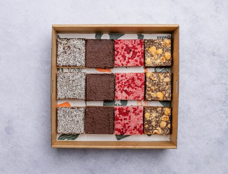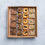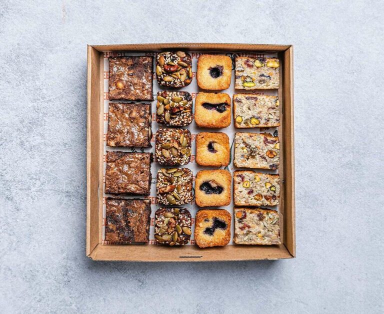 Our most popular morning and afternoon tea sweet treats, all in the one platter. Each platter includes: 8 x Chocolate Macadamia Brownies. 10 x Blueberry Bites. 5 x Fignut and Grain Bites. 5 x Pistachio & Coconut Bites. -