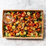 Smoked salmon, cucumber, edamame, sunflower seeds, avocado, crispy shallots, and mixed lettuce with green goddess dressing. REGULAR: Serves up to 10 people as a side. SMALL: Serves up to 4 people as a side. -