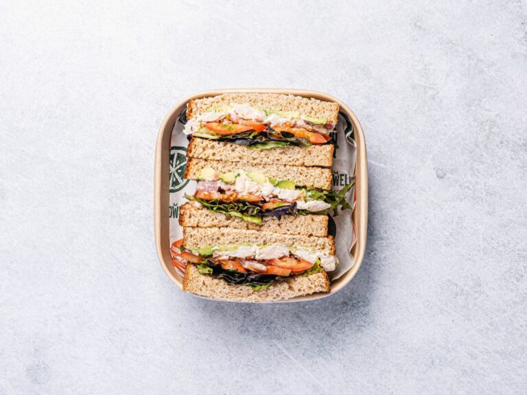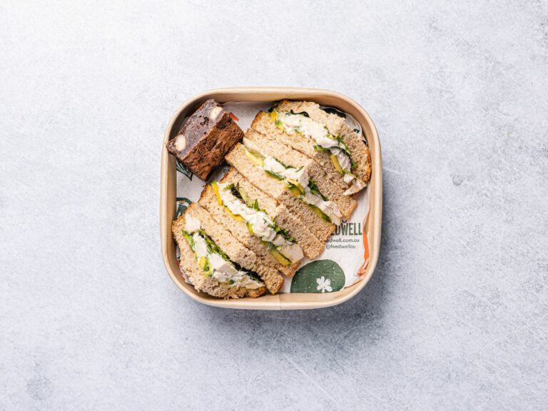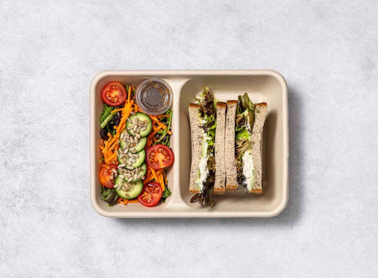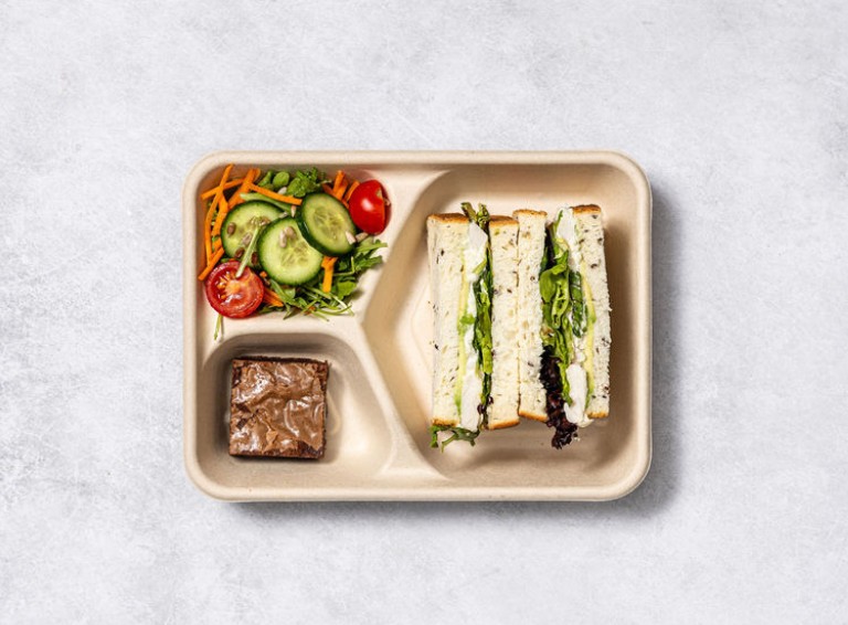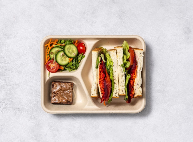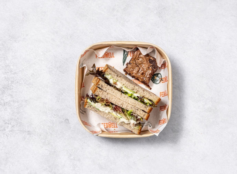 One sandwich and a half freshly made with quality vegetarian and vegan fillings, individually packed. -