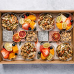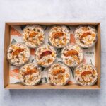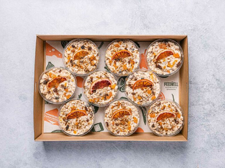 9 x bircher muesli overnight oats cups, individually packed and packed in a platter. -