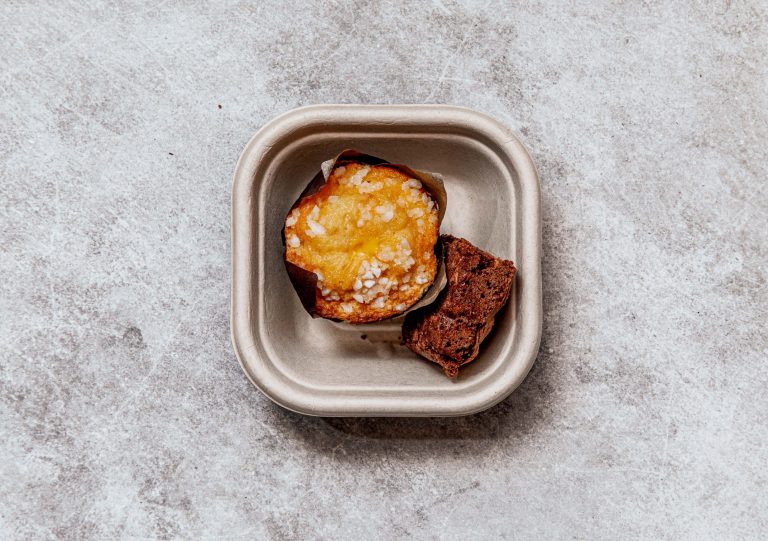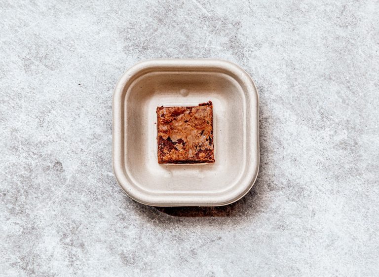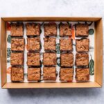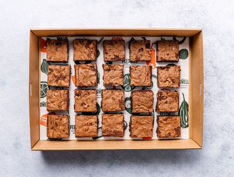 An indulgent choc macadamia brownie, hygienically packed. -