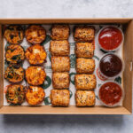 An assortment of 20 freshly baked cocktail rolls, delivered warm. Includes meat and vegetarian options. Delivered warm. -