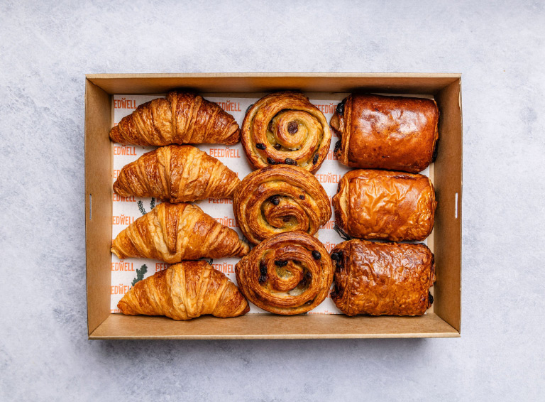 A platter of flakey, sweet pastries is a given at any meeting! Includes: 4 x Plain croissants 3 x Pain au chocolate 3 x Cinnamon scrolls -