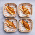 Freshly baked croissants with a selection of tasty savoury fillings, served in a platter. -