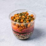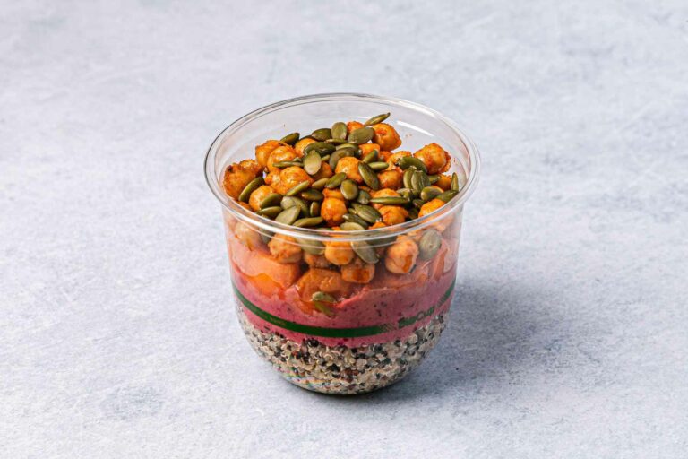 Roast sweet potato, quinoa, marinated spiced chickpeas, toasted pepita seeds with a creamy beetroot tahini.