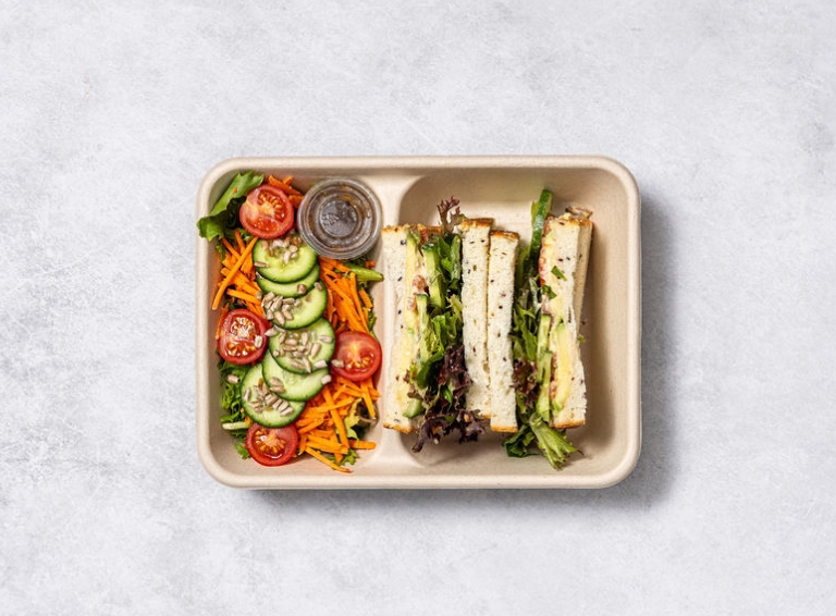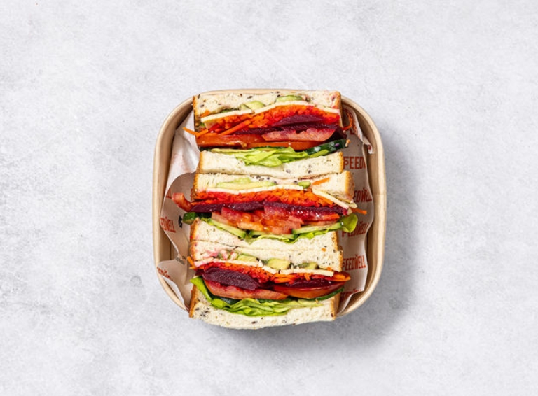 Freshly made sandwich with quality vegetarian or vegan fillings, individually packed. -