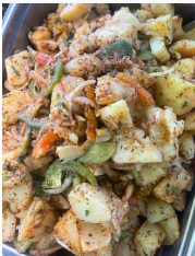 Diced leg of lamb, tomato, onion, capsicum, and parsley. -