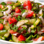 Boiled and pounded wheat, parsley, tomato, onion, and cucumber. -